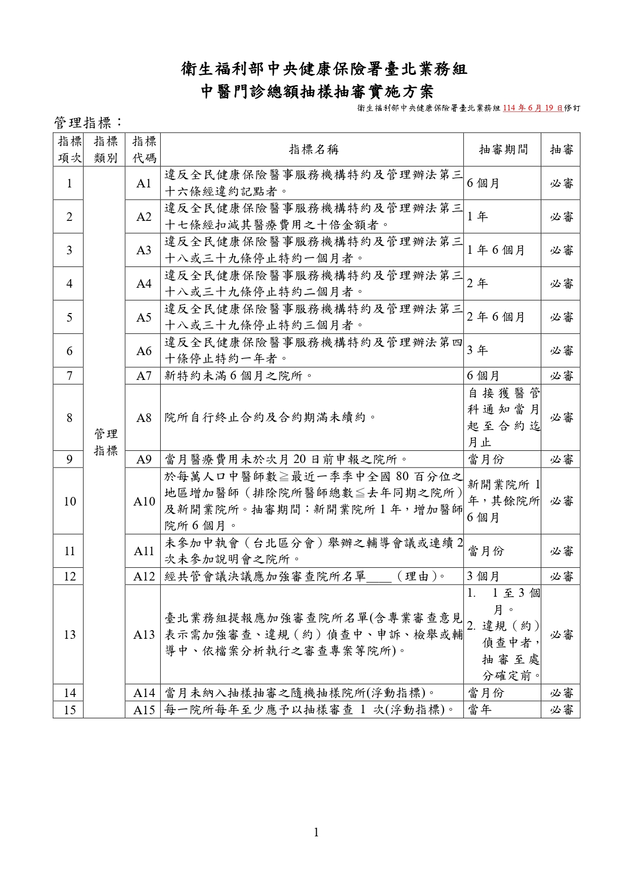 中醫門診總額抽樣抽審實施方案 ( 114 年 6 月 19 日修訂)