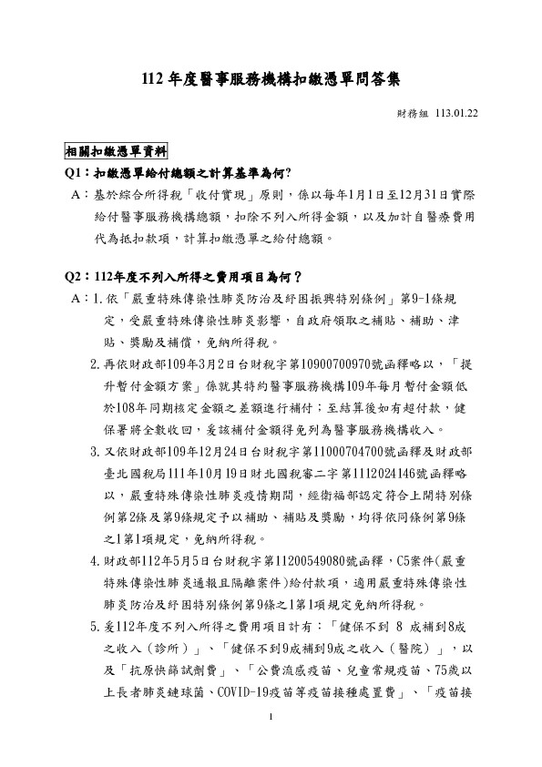112年度醫事服務機構扣繳憑單問答集_001