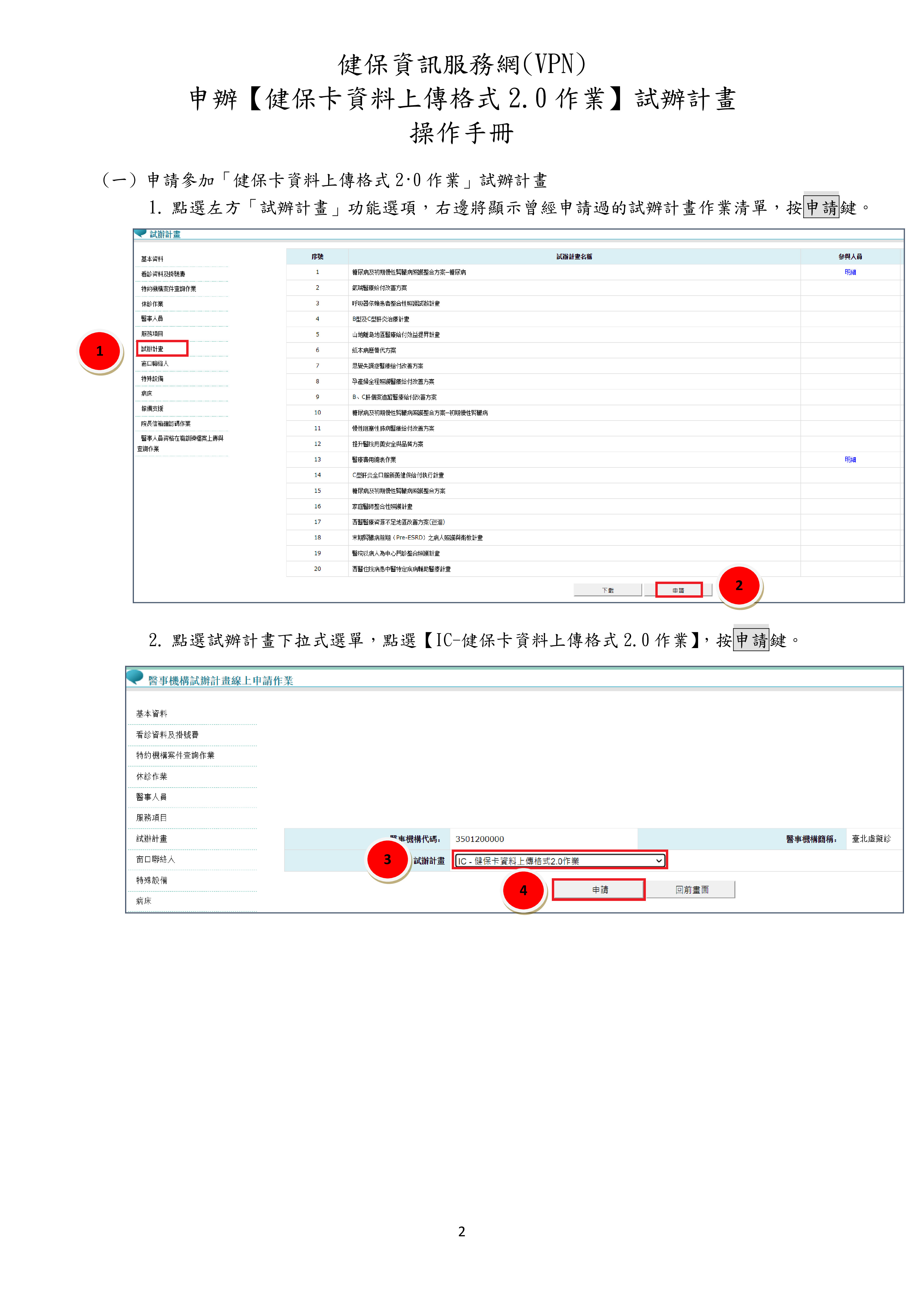 申辦【健保卡資料上傳格式 2.0 作業】試辦計畫操作手冊(2/4)