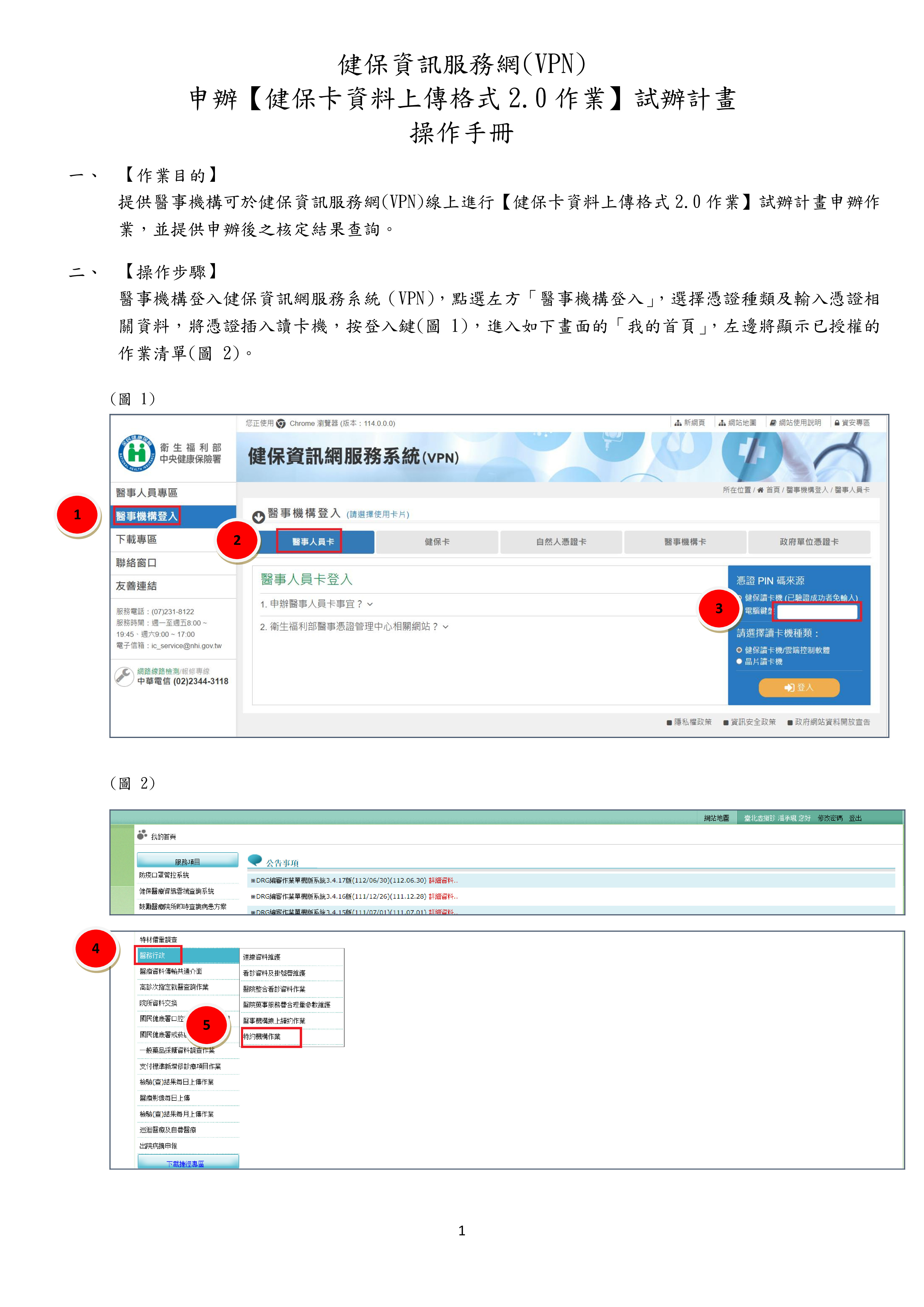申辦【健保卡資料上傳格式 2.0 作業】試辦計畫操作手冊(1/4)