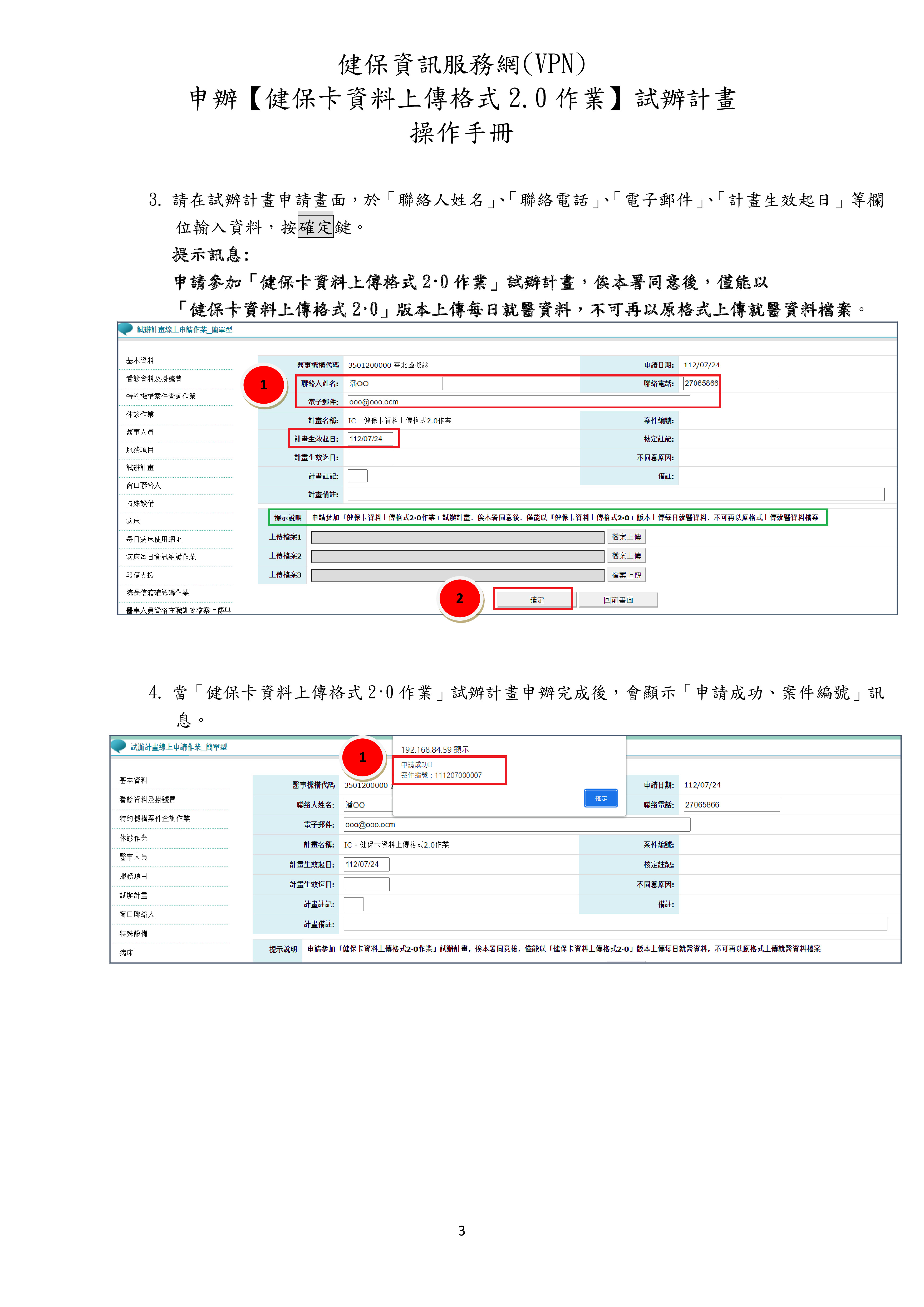 申辦【健保卡資料上傳格式 2.0 作業】試辦計畫操作手冊(3/4)